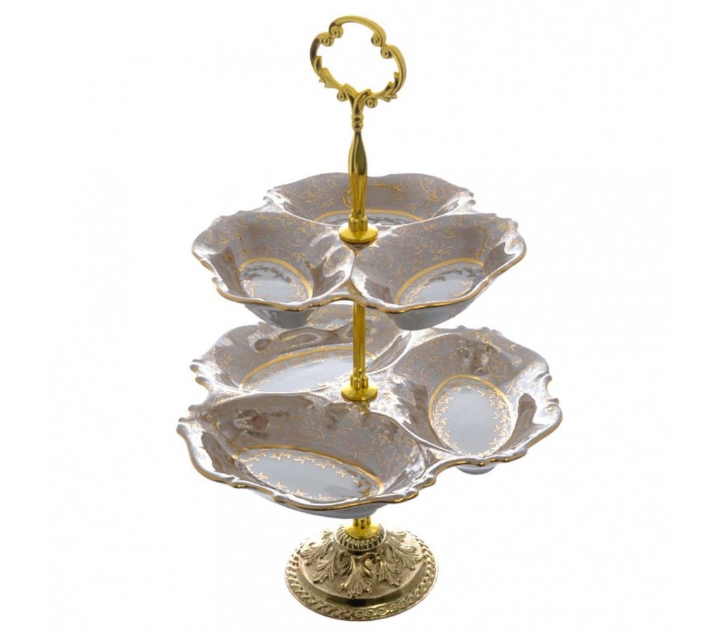 Этажерка 3 яруса Queen's Crown Aristokrat Лист Бежевый. Не подходит для использования в СВЧ-печи. Рекомендуется мыть руками во избежание повреждения декоративного покрытия. Обычная картонная упаковка.