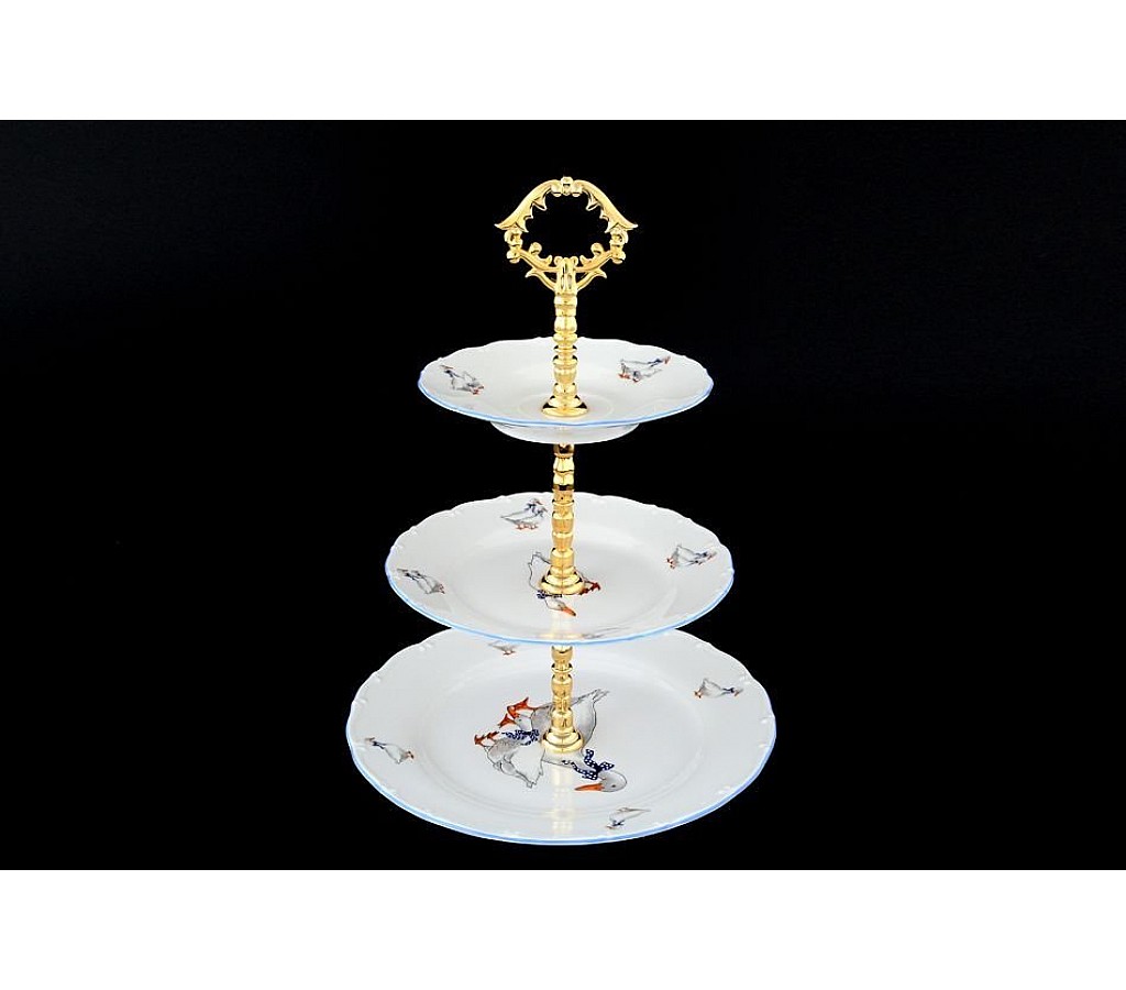 Этажерка (Горка) 3 яруса Офелия Гуси Старорольский Фарфор (MZ) это изделие высочайшего качества от известного производителя Starorolsky Porzellan Moritz Zdekauer. Этажерки необходимая вещь в каждом доме, а так же прекрасный вариант подарка близкому человеку. В интернет магазине посуды Exelera.ru вы можете купить различные предметы сервировки по привлекательной цене.