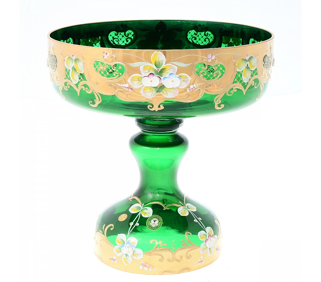 | Фруктовница на ножке Лепка Зеленая E-V Bohemia 26 см | |