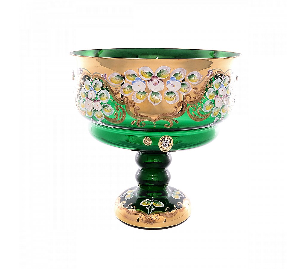| Фруктовница на ножке Bohemia Лепка Зеленая E-V 26 см | |