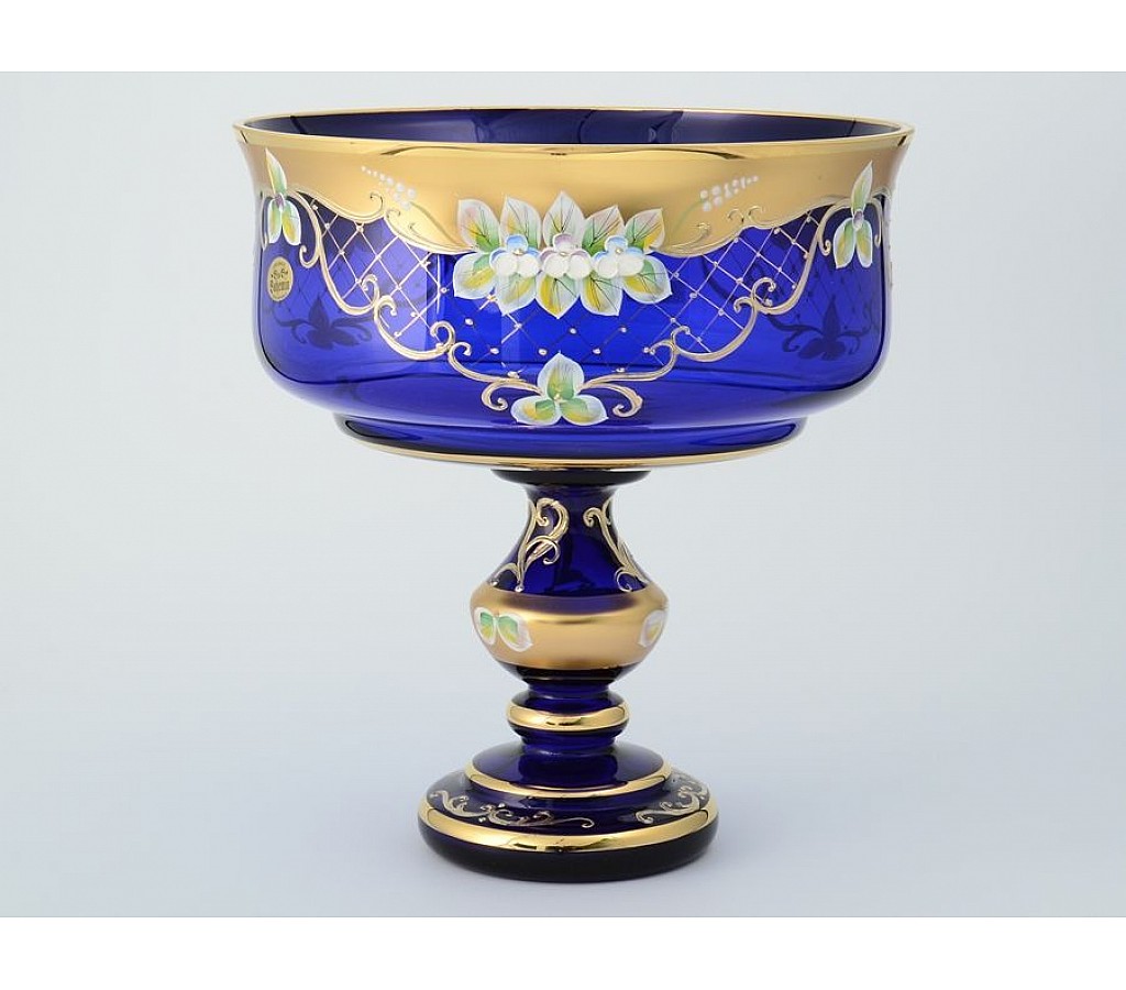 | Фруктовница на ножке Лепка Синяя B-L Bohemia 28 см | |