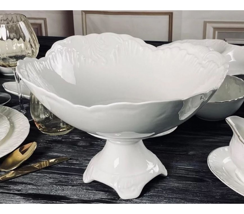 Коллекция Аврора изготовлена из высококачественного белоснежного фарфора. Посуду можно мыть в ПМ и использовать в микроволновой печи, что крайне важно и очень удобно. Посуда данной коллекции идеально подходит как для домашнего, так и профессионального использования в ресторанах, кафе, точках общественного питания. На прочной глазури не остается следов от столовых приборов.Коллекция представлена различными вариантами блюд, салатников, тарелок, менажниц а также чайными наборами, которые можно приобрести по штучно. Все предметы коллекции имеют индивидуальную подарочную упаковку.