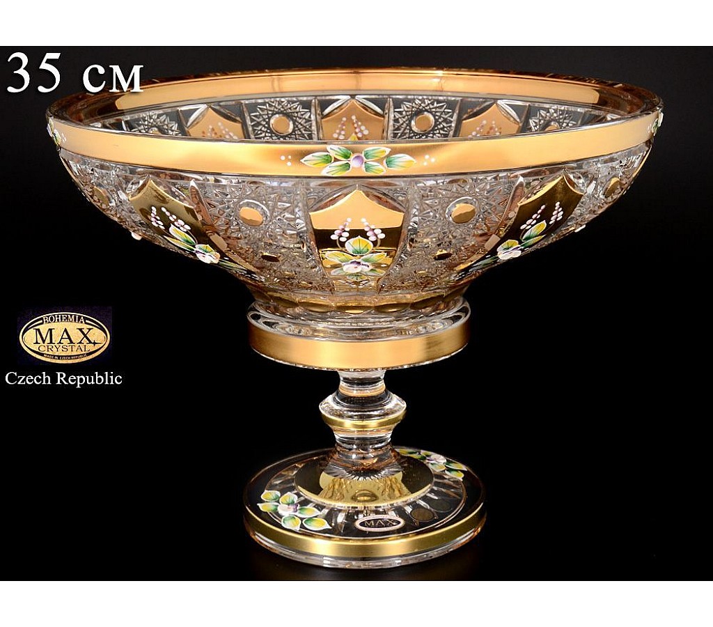 Фруктовница 35 см на ножке Max Crystal Золото Bohemia (Богемия) это изделие высочайшего качества от известного производителя MAX Crystal. Фруктовницы необходимая вещь в каждом доме, а так же прекрасный вариант подарка близкому человеку. В интернет магазине посуды Exelera.ru вы можете купить различные предметы сервировки по привлекательной цене.