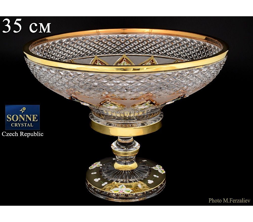 | Хрустальная ваза для фруктов на ножке Sonne Crystal Золото 35 см | |