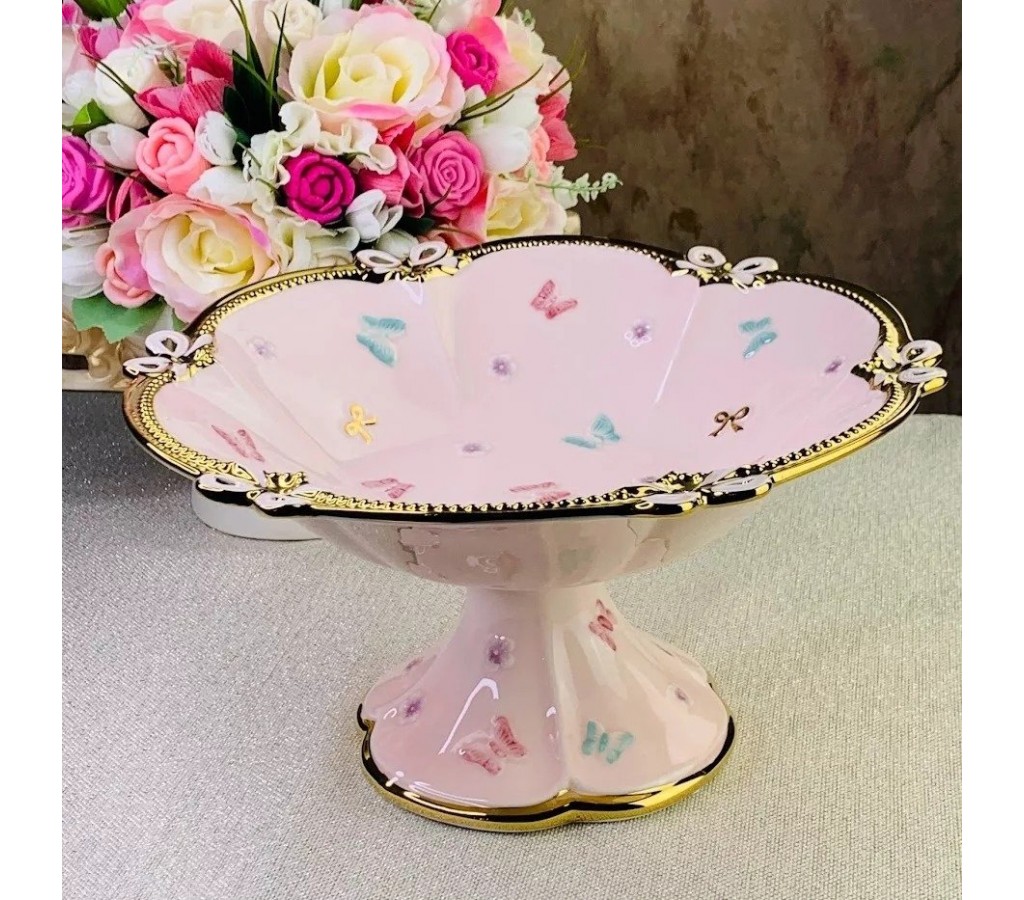 | Фруктовница Lenardi Бабочки розовые 30,5 см на ножке | |
