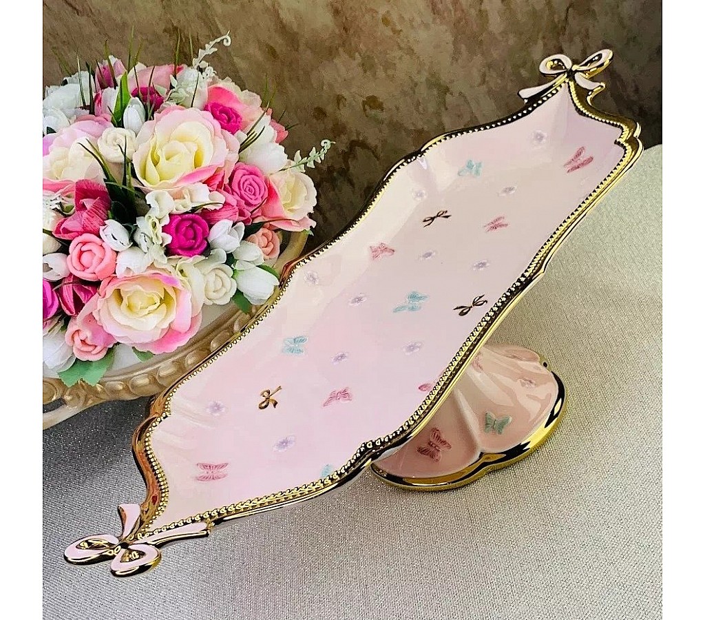 Фруктовница Lenardi Бабочки розовые 56 см на ножке. Подарочная коробка. Рекомендуется мыть руками. Не подходит для использования в микроволновой печи.
