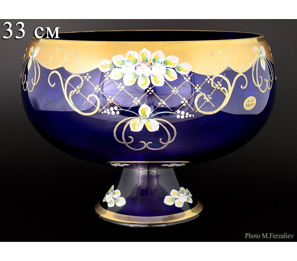 | Фруктовница на ножке Лепка Синяя B-L Bohemia 30 см | |