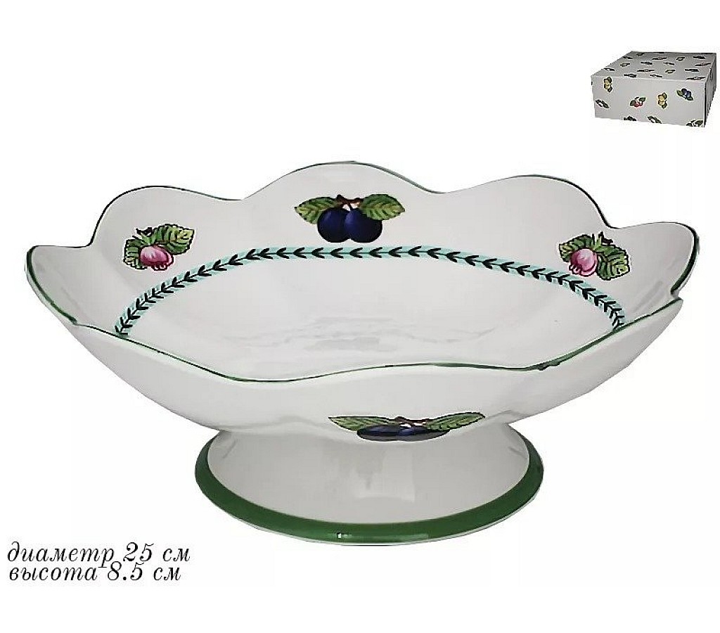 Фруктовница на ножке Фрукты Lenardi 25 см. Можно мыть в посудомоечной машине. Подарочная коробка.