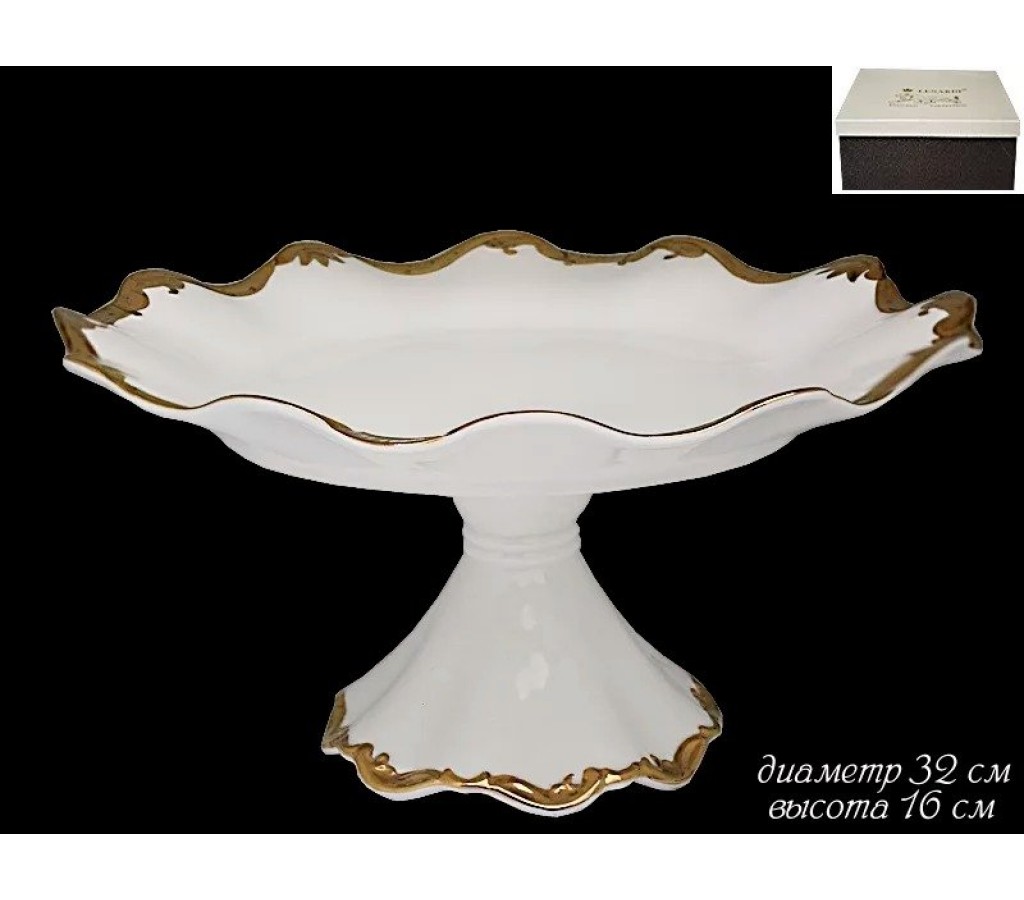 Фруктовница на ножке Lenardi Josefine белая 32 см. Не рекомендуется использовать в микроволновой печи и мыть в посудомоечной машине, по причине возможного повреждения декоративного золотого покрытия.