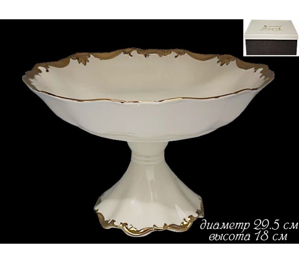 Фруктовница на ножке Lenardi Josefine слоновая кость 29 см. Не рекомендуется использовать в микроволновой печи и мыть в посудомоечной машине, по причине возможного повреждения декоративного золотого покрытия.
