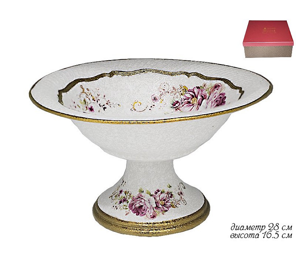 Фруктовница на ножке Мраморная Lenardi, диаметр 28 см. Высота 16,5 см. Подарочная коробка.