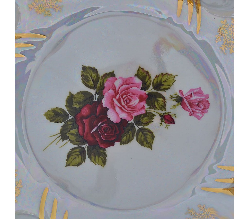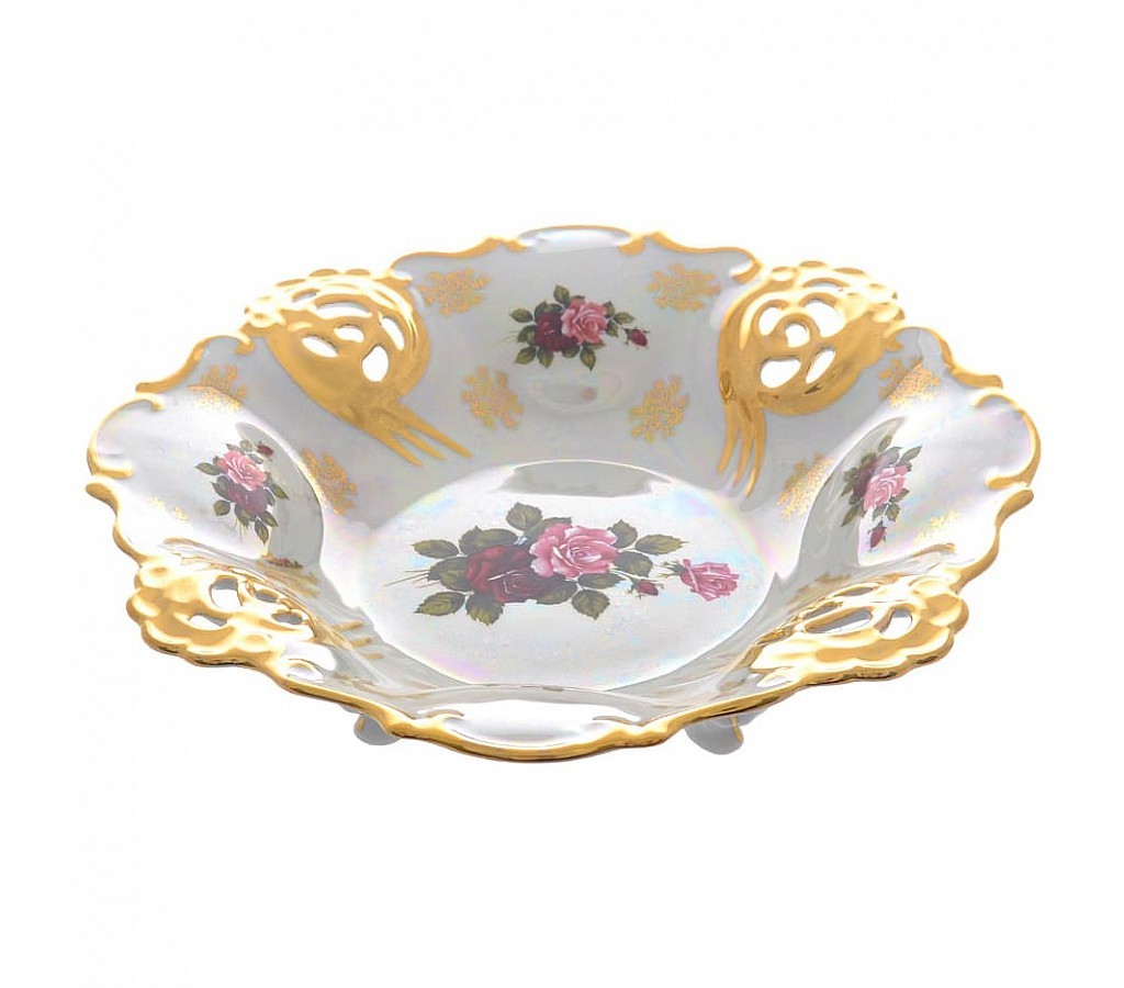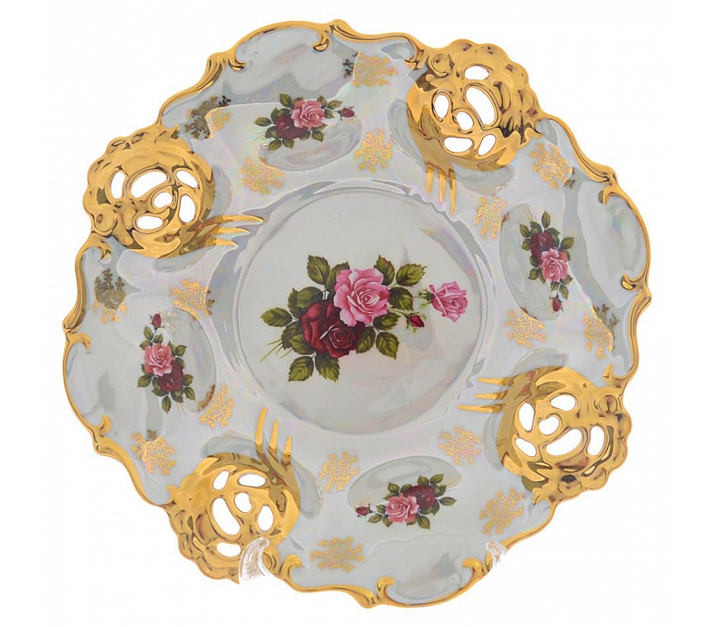 Фруктовница Queen's Crown Роза перламутр 33 см. Не подходит для использования в СВЧ-печи. Рекомендуется мыть руками во избежание повреждения декоративного покрытия. Обычная картонная упаковка.