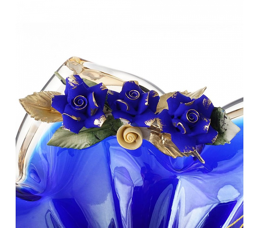 Ваза изготовлена из Муранского стекла, по старинным технологиям, возникшим на острове Мурано, рядом с Венецией.Главной отличительной особенностью венецианского стекла является то, что оно создается только вручную,и обладает уникальным узором, который неповторяется