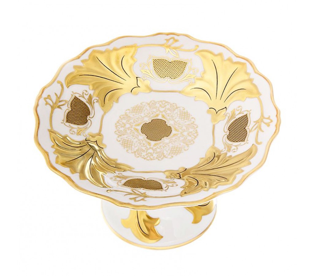 - Ваза для фруктов Ютта 25 см на ножкеWeimar Porzellan Симфония Золотая