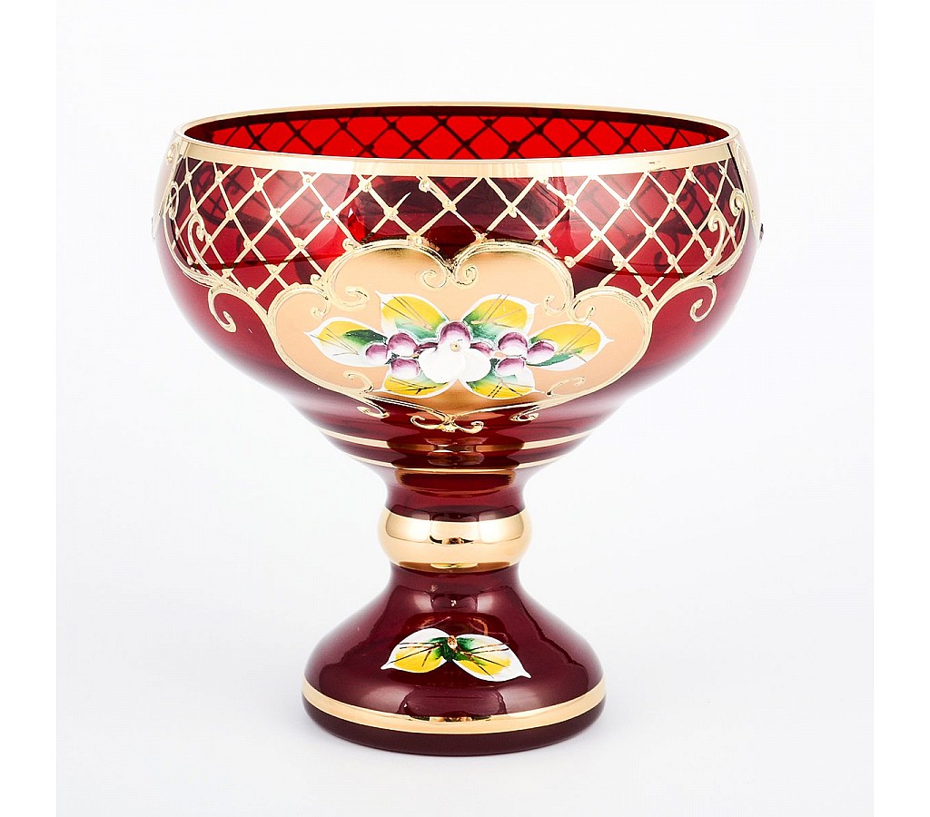 | Конфетница на ножке Лепка красная И-В Bohemia Crystal 13 см | |