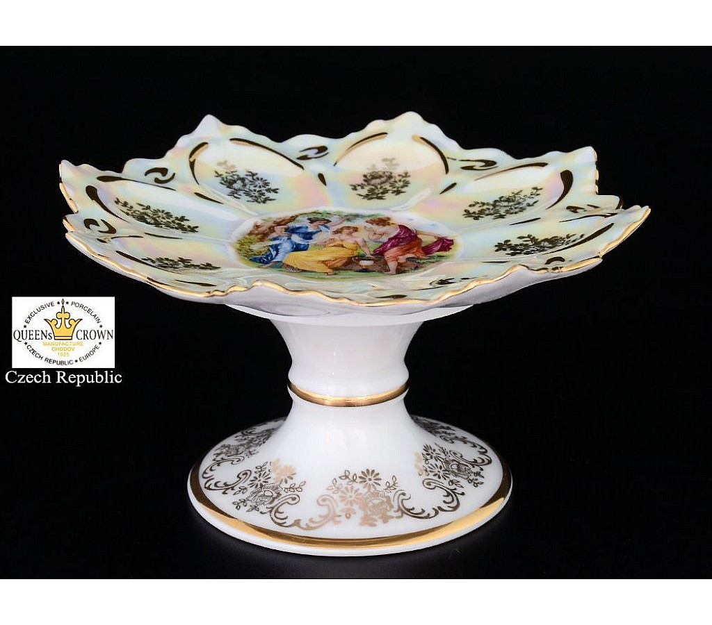| Конфетница на ножке Мадонна перламутр Корона Queens Crown фигурные края 17 см | |