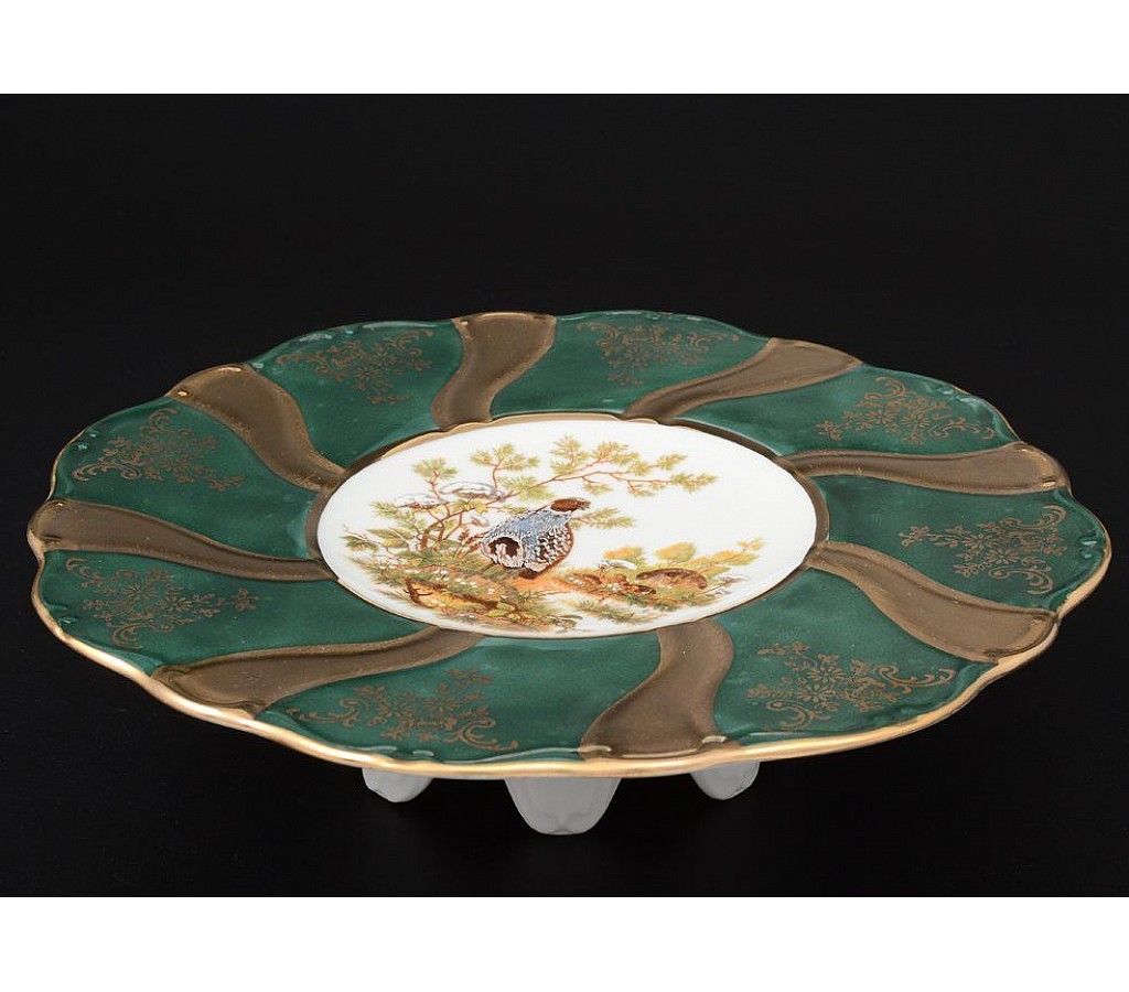 | Конфетница 20 см на ножке Охота зеленая Корона Queens Crown | |