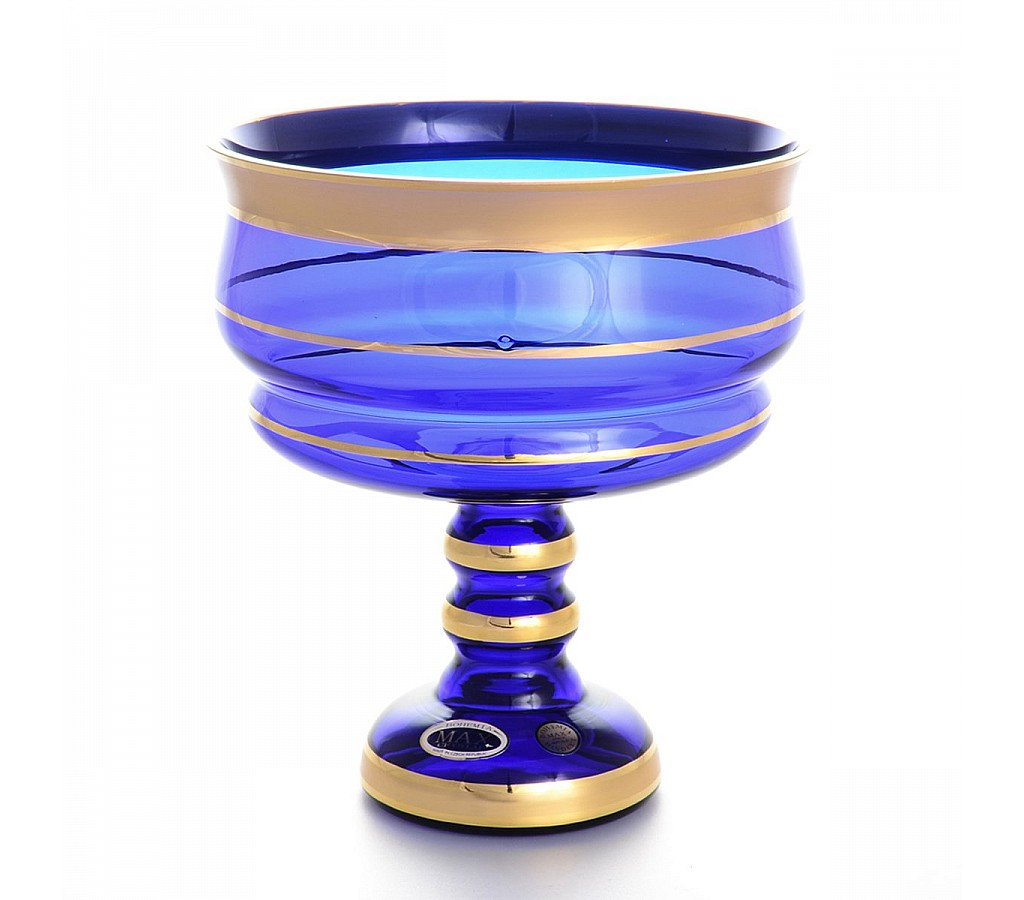 | Конфетница на ножке Синяя отводка золото Star Crystal 20 см 30524 | |