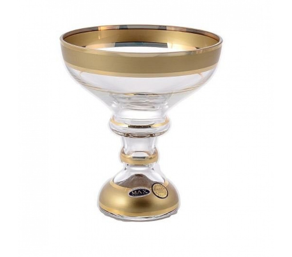 Конфетница на ножке 20 см Золотые полосы прозрачная Star Crystal