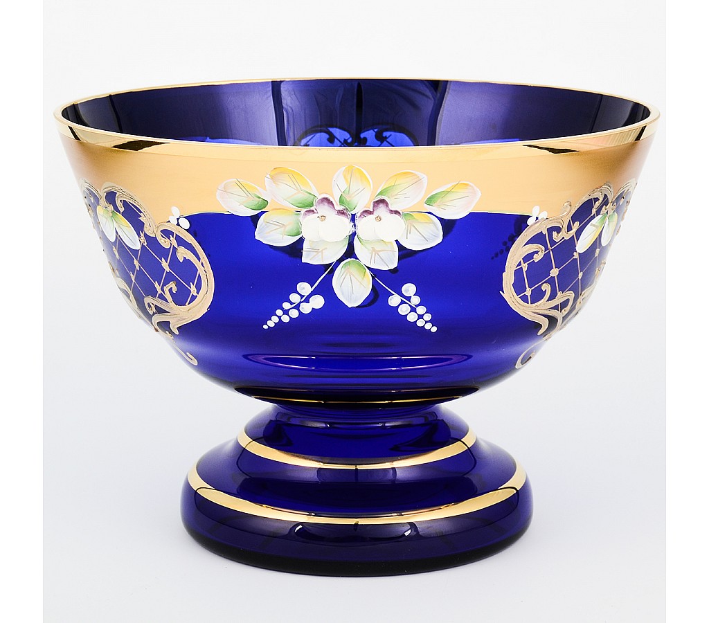 Конфетница Лепка Синяя S-A Bohemia Crystal низкая 21 см