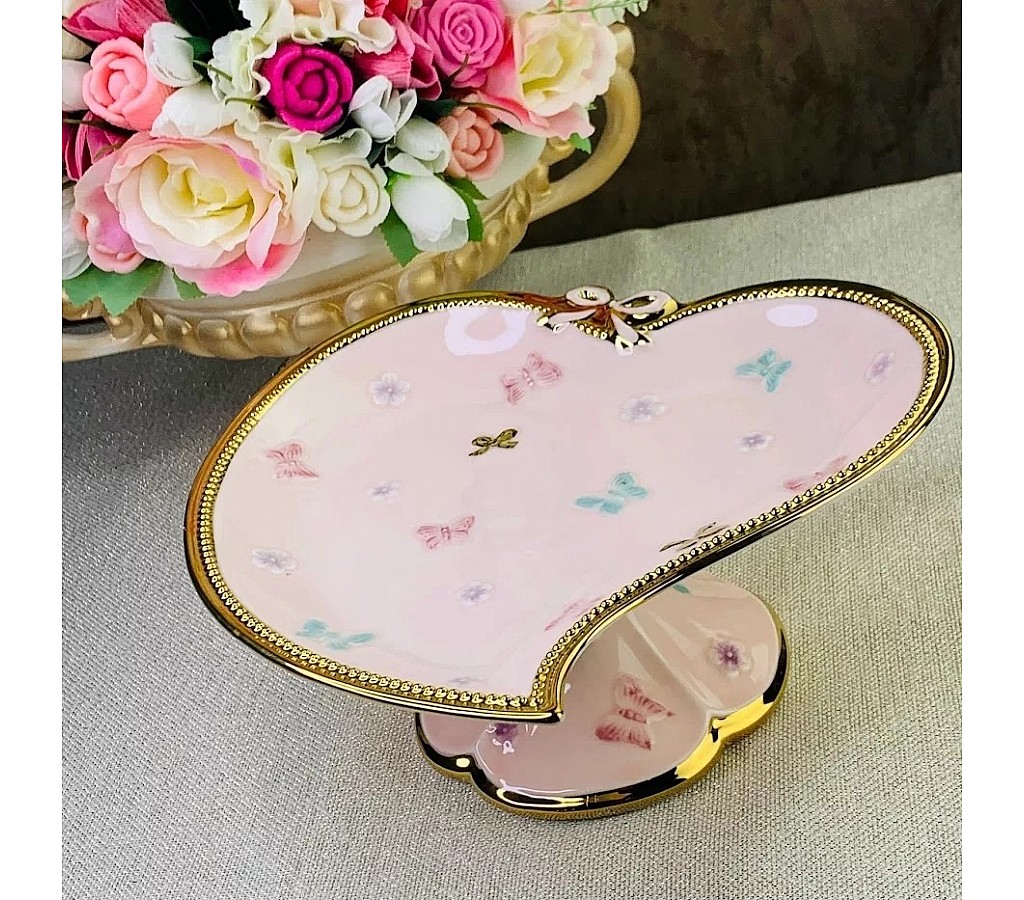 Конфетница в форме сердца Lenardi Бабочки розовые 24 см на ножке. Подарочная коробка. Рекомендуется мыть руками. Не подходит для использования в микроволновой печи.