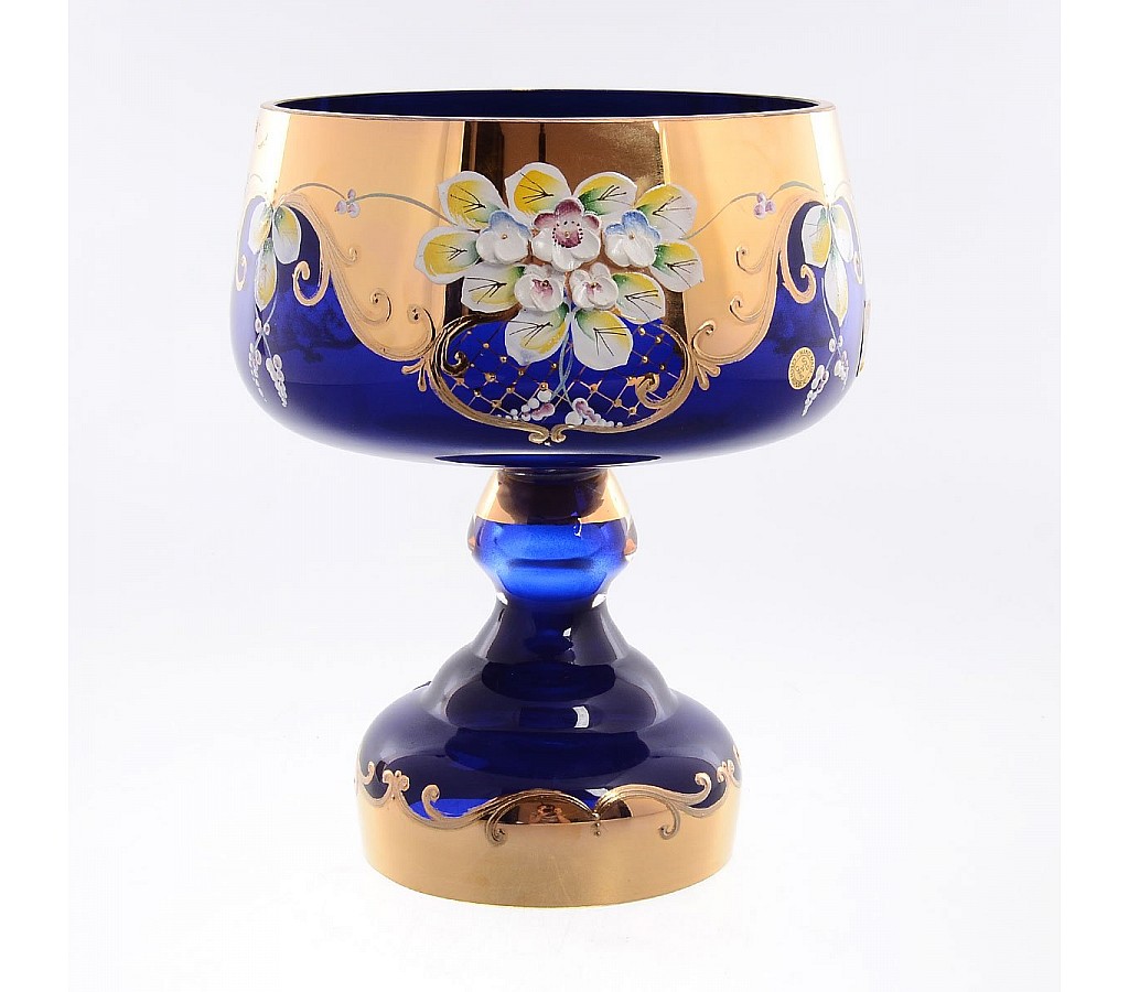 | Конфетница на ножке 18 см Bohemia Лепка Синяя E-V | |