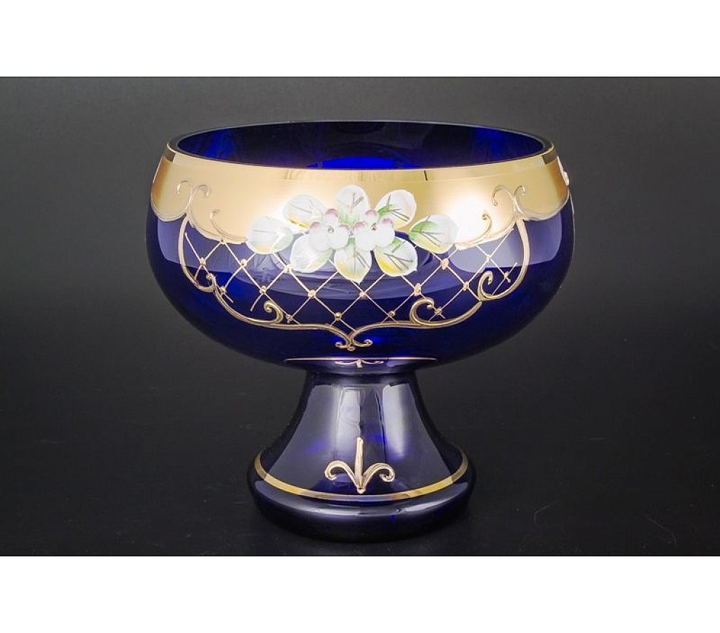 | Конфетница на ножке 21 см Bohemia Crystal Лепка Синяя S-A | |
