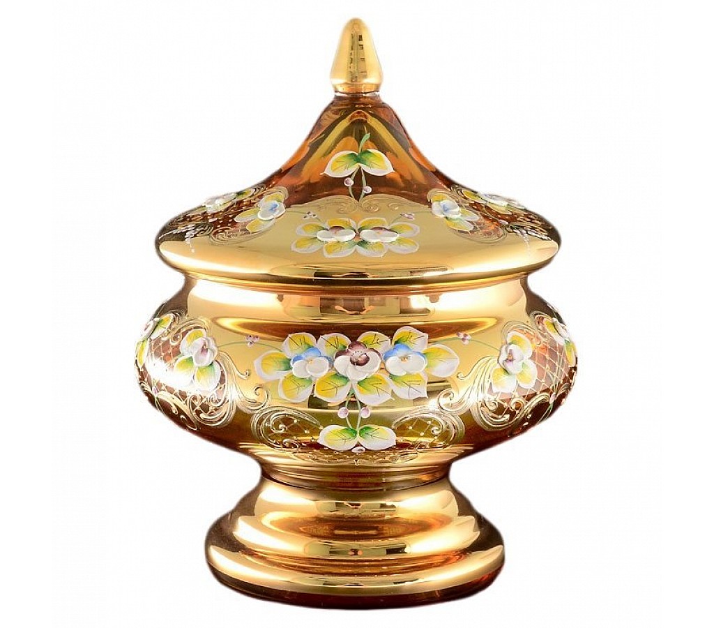 | Конфетница с крышкой 21 см Лепка янтарная E-V Bohemia Crystal | |