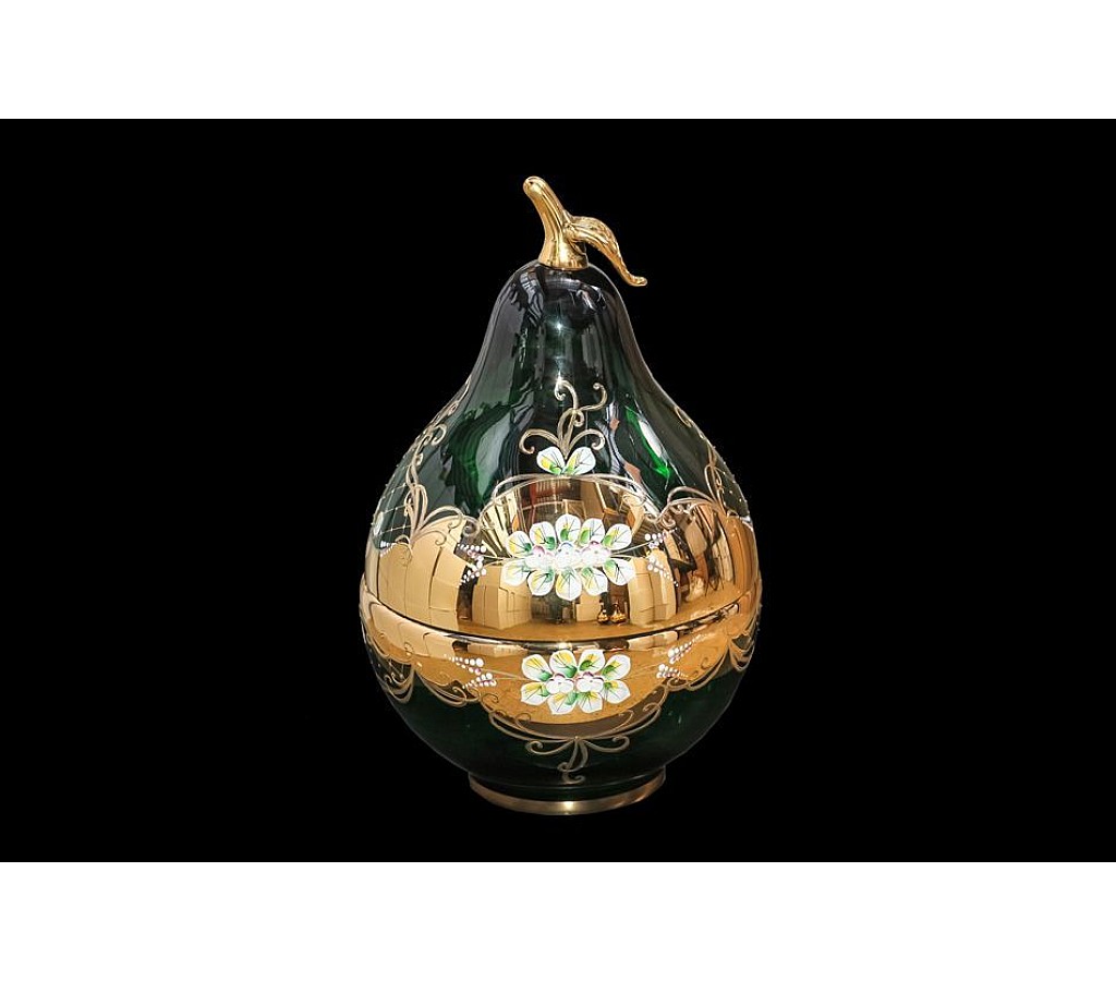Конфетница с крышкой (Груша) 40 см Лепка Зеленая М+М Bohemia Crystal