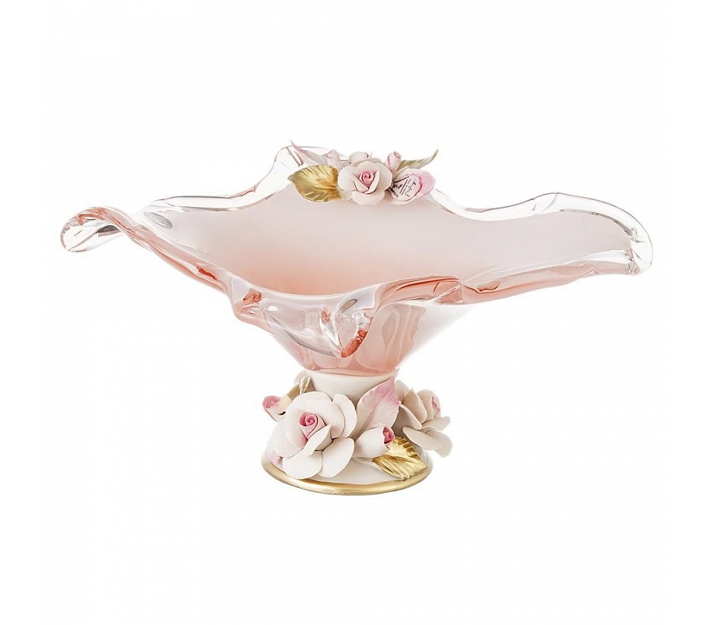 Ваза изготовлена из Муранского стекла, по старинным технологиям, возникшим на острове Мурано, рядом с Венецией.Главной отличительной особенностью венецианского стекла является то, что оно создается только вручную,и обладает уникальным узором, который неповторяется