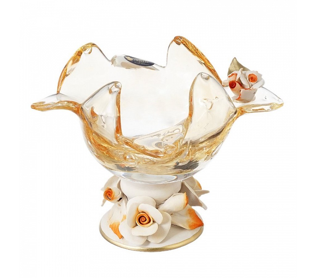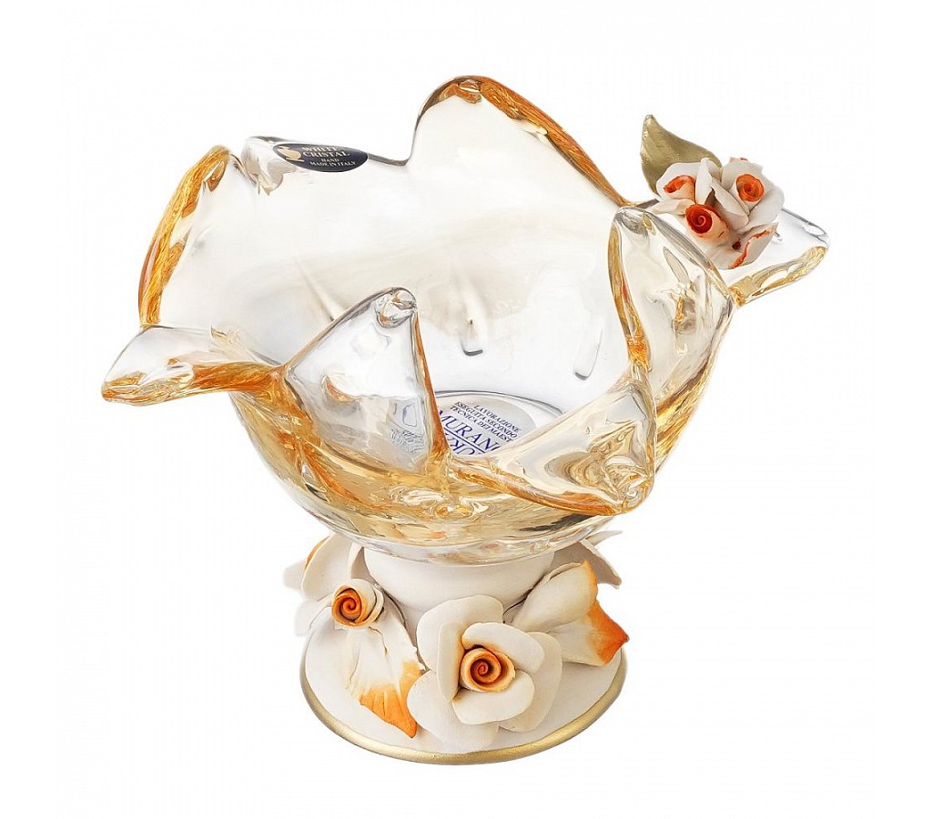 Ваза изготовлена из Муранского стекла, по старинным технологиям, возникшим на острове Мурано, рядом с Венецией.Главной отличительной особенностью венецианского стекла является то, что оно создается только вручную,и обладает уникальным узором, который неповторяется