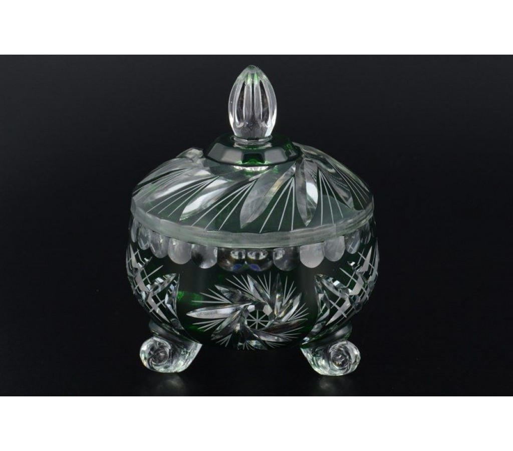 Ваза для конфет с крышкой зеленая 10 см Цветной хрусталь Bohemia