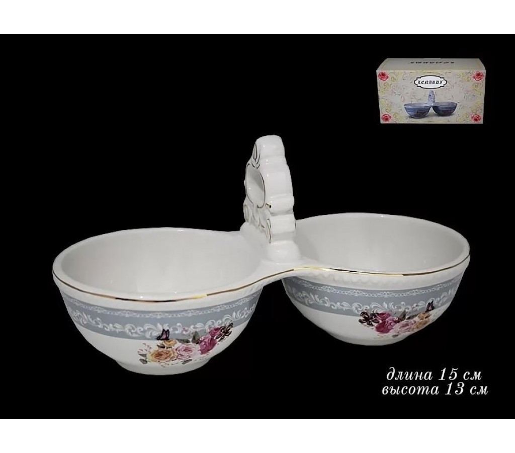Менажница маленькая двухсекционная Фиалка Lenardi. Длина 15 см. Высота 13 см. Рекомендуется мыть руками. Не использовать в микроволновой печи.