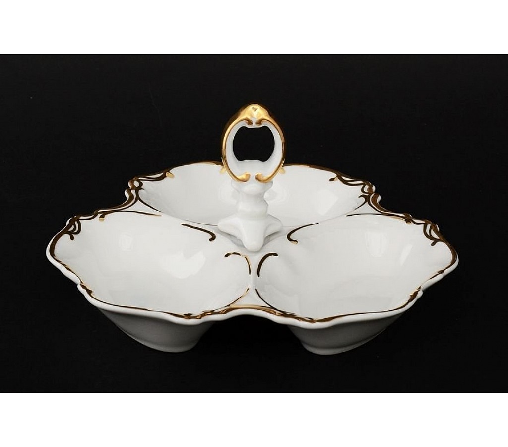 Менажница 19 см Офелия Отводка золото Старорольский Фарфор (MZ) это изделие высочайшего качества от известного производителя Starorolsky Porzellan Moritz Zdekauer. Менажницы необходимая вещь в каждом доме, а так же прекрасный вариант подарка близкому человеку. В интернет магазине посуды Exelera.ru вы можете купить различные предметы сервировки по привлекательной цене.