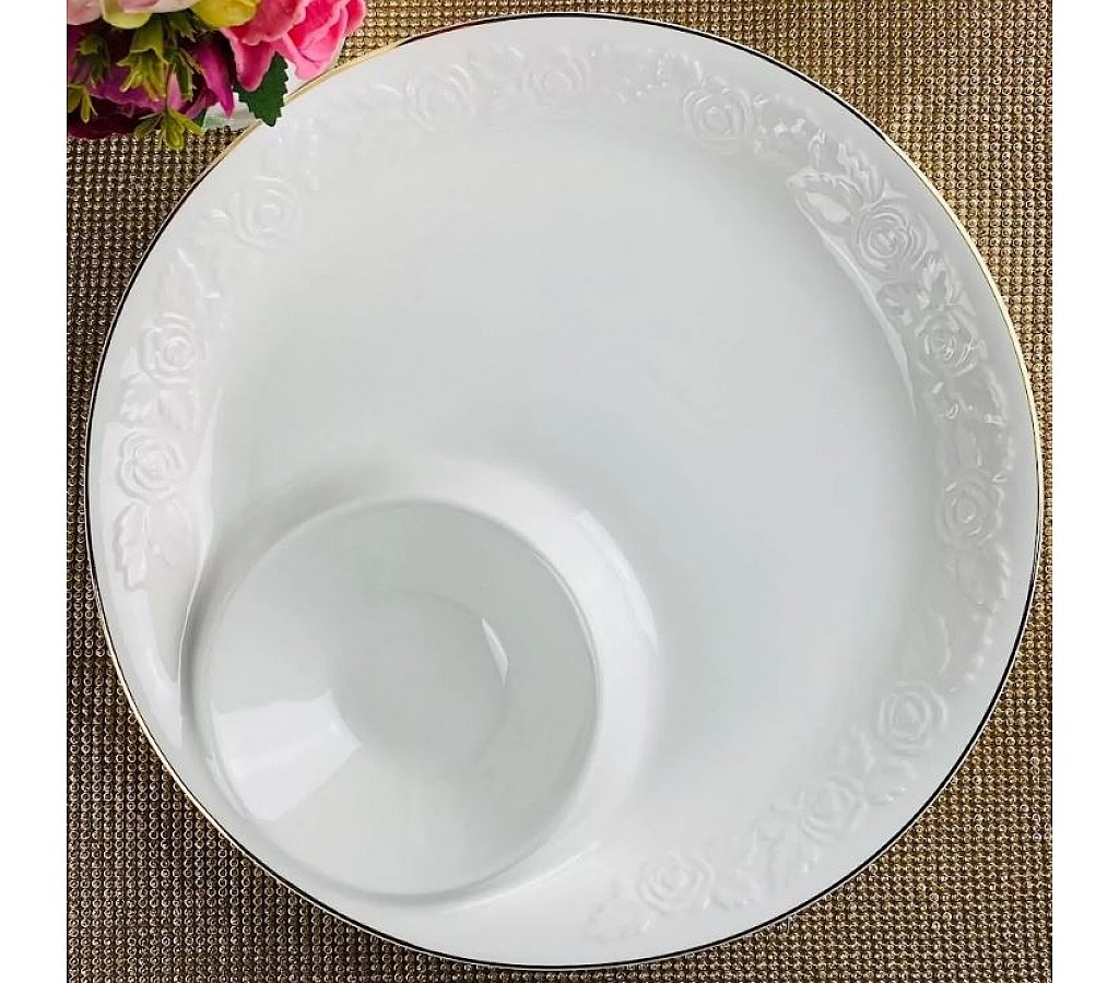 Посуда из серии Белая роза выполнена из высококачественного Изделия простого лаконичного дизайна на бортике с изящным и объемным узором в виде распустившейся розы, по краю золотая отводка. В серии посуды из белого фарфора представлен широкий ассортимент товаров для сервировки стола, которые, несомненно, впишутся в любой интерьер. Упакована в подарочную коробку.