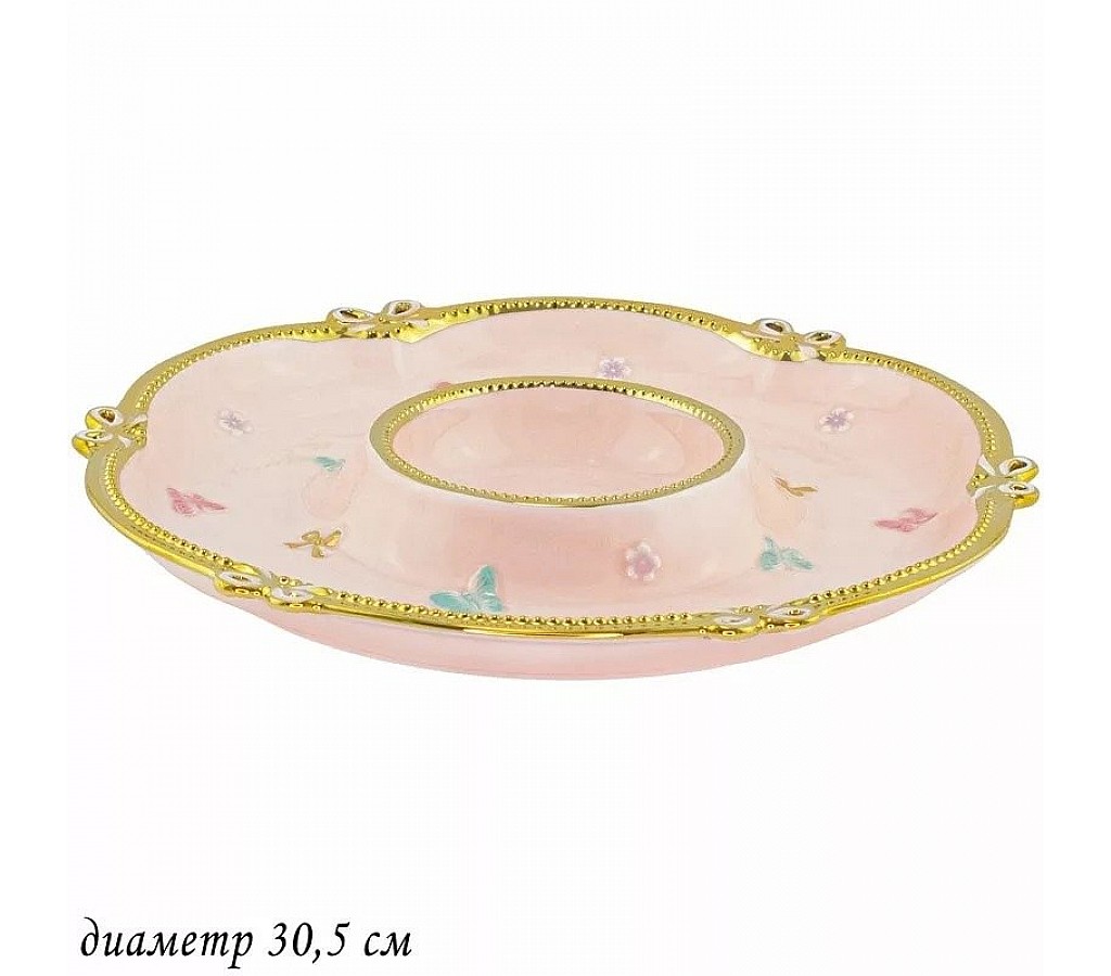 Менажница Lenardi Бабочки розовые 30,5 см. Подарочная коробка. Рекомендуется мыть руками. Не подходит для использования в микроволновой печи.