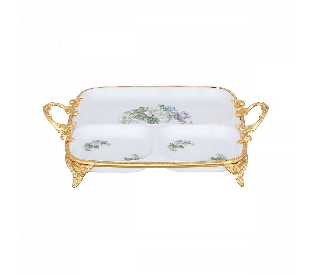 Менажница 3-х секционная с ручками Белый цветок 32х25 см идеальное решение для подачи закусок или фруктов. Рекомендуется мыть вручную. Изделие упаковано в подарочную коробку.