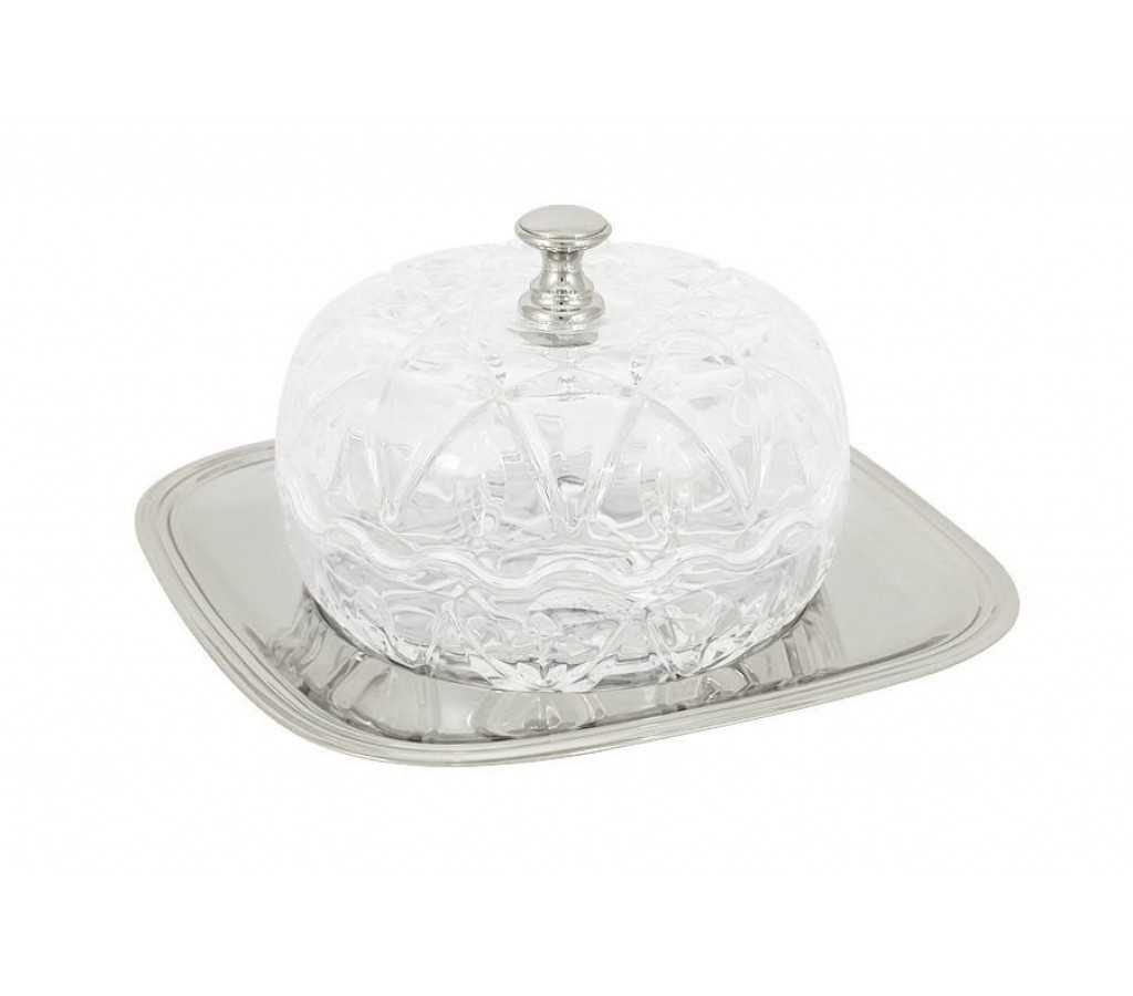 | Вазочка для варенья с крышкой на металлическом подносе | |