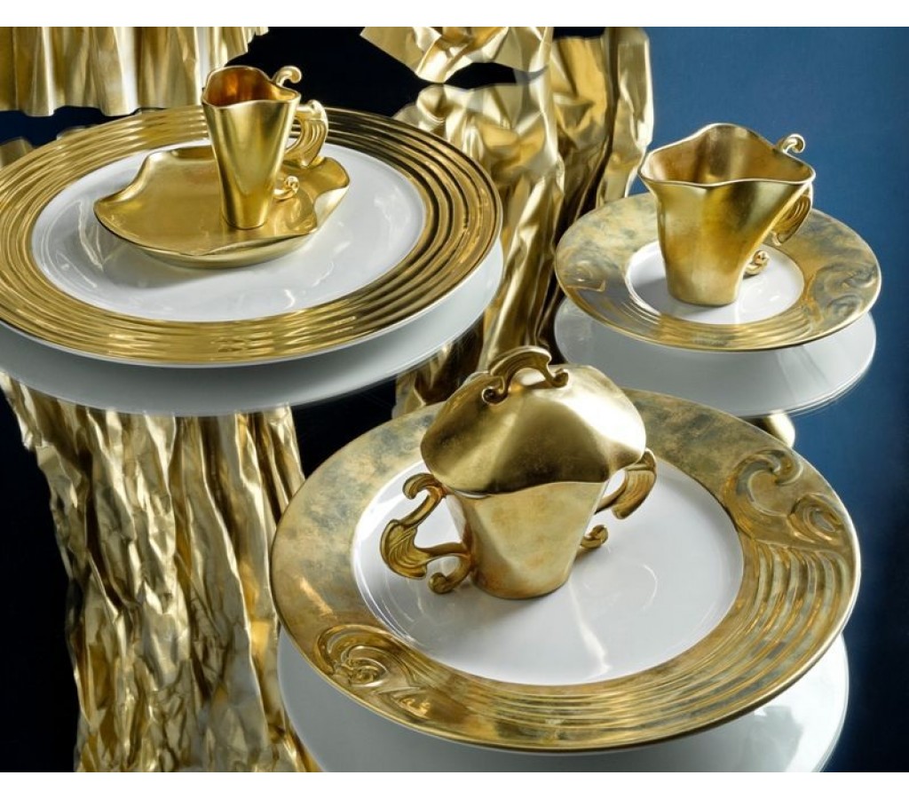 Эта коллекция – навеяна работами Сальвадора Дали. Сахарница с крышкой и двумя эффектными ручками выполнена из фарфора высочайшего качества и покрыта позолотой 24 карата.