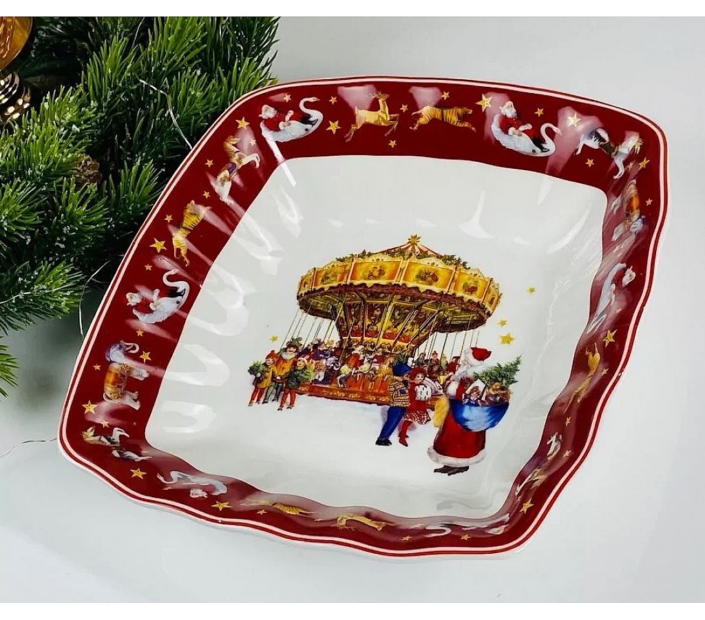 - Квадратный салатник 23х6 см Новогодний Lenardi