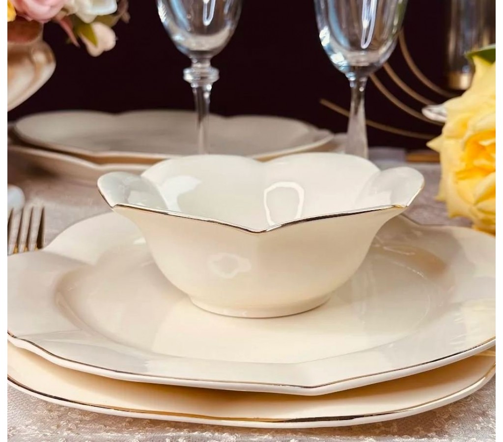 Набор из 6 салатников диаметром 15 см Мираж Lenardi изготовлен из фарфора высочайшего качества. Упакован в подарочную коробку. Не рекомендуется использовать в микроволновой печи и мыть в посудомоечной машине, по причине возможного повреждения золотого декоративного покрытия.