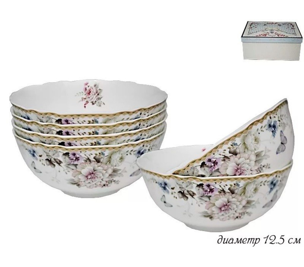 Набор из 6 салатников Lenardi Хризантемы 12 см. Не рекомендуется мыть в посудомоечной машине и использовать в микроволновой печи. Подарочная коробка.