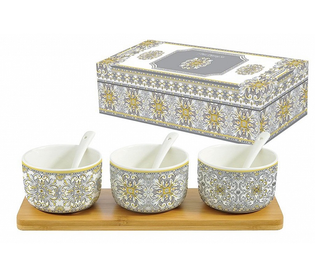 | Набор салатников с ложками на подносе Майолика (серая) Easy Life | |