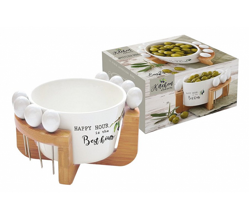 Набор для закуски: чаша д/оливок + 8 шпажек на подставке Kitchen Elements Easy Life R2S в подарочной упаковке, размер 16см