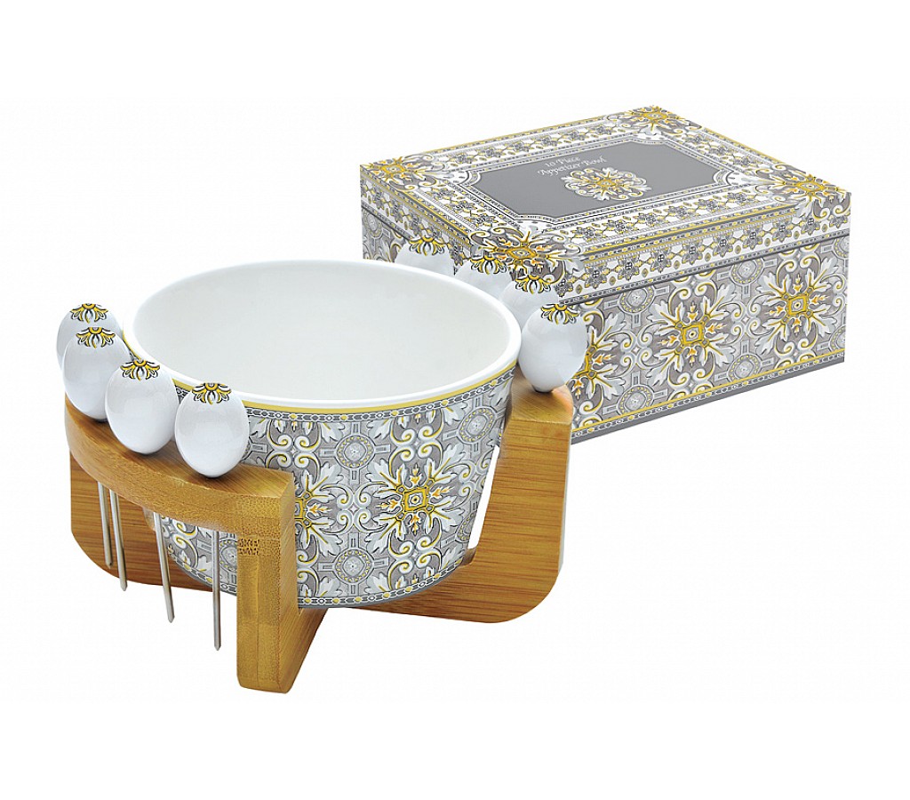 | Салатник и 8 шпажек на подставке Майолика (серая) Easy Life | |