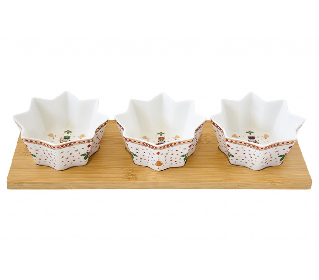 Набор для закусок Щелкунчик 4 предмета. Подарочная упаковка. Рекомендуется ручная мойка теплой водой с применением жидких моющих средств. Не использовать в СВЧ и в посудомоечной машине.