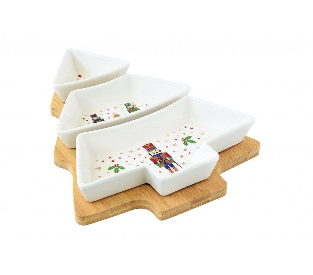 Набор для закусок Щелкунчик (Ёлочка) 4 предмета. Подарочная упаковка. Рекомендуется ручная мойка теплой водой с применением жидких моющих средств. Не использовать в СВЧ и в посудомоечной машине.