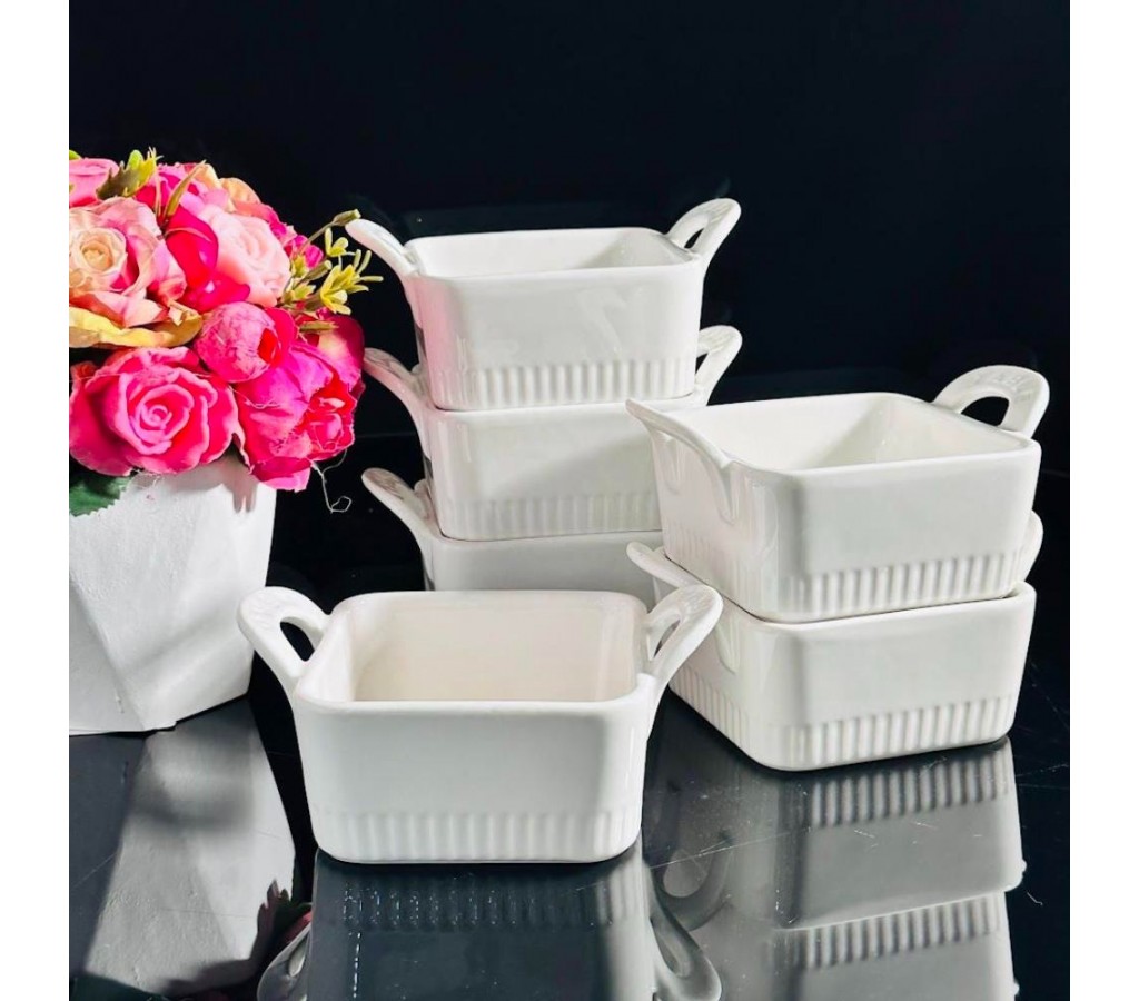 Набор из 6 квадратных салатников 13 см White Lenardi с ручками изготовлен из фарфора. Можно мыть в ПМ.