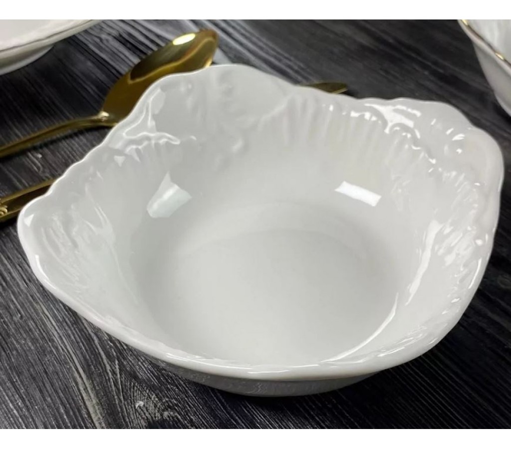 Коллекция Аврора изготовлена из высококачественного белоснежного фарфора. Посуду можно мыть в ПМ и использовать в микроволновой печи, что крайне важно и очень удобно. Посуда данной коллекции идеально подходит как для домашнего, так и профессионального использования в ресторанах, кафе, точках общественного питания. На прочной глазури не остается следов от столовых приборов.Коллекция представлена различными вариантами блюд, салатников, тарелок, менажниц а также чайными наборами, которые можно приобрести по штучно. Все предметы коллекции имеют индивидуальную подарочную упаковку.