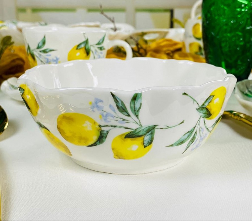 Коллекция «ЛИМОНЫ» порадует вас яркими деталями в дизайне, в виде изображений сочного лимона, которые придают посуде особый шарм и неповторимый вид. В коллекции "ЛИМОНЫ" представлен широкий выбор изделий: тарелки различных размеров, чайный и кофейный наборы, чайные сервиз, кружки, салатницы и многое другое. Вы сможете создать полноценный сервиз, который станет ярким акцентом на вашем столе и порадует не только вас, но и ваших гостей.